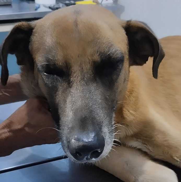 LO MOJARON, MUCOSAS PALIDAS, PETEQUIAS, DESHIDRATACION SEVERA, ANOREXIA, TUVO GARRAPATAS, SIN APETITO, POSTRADO,